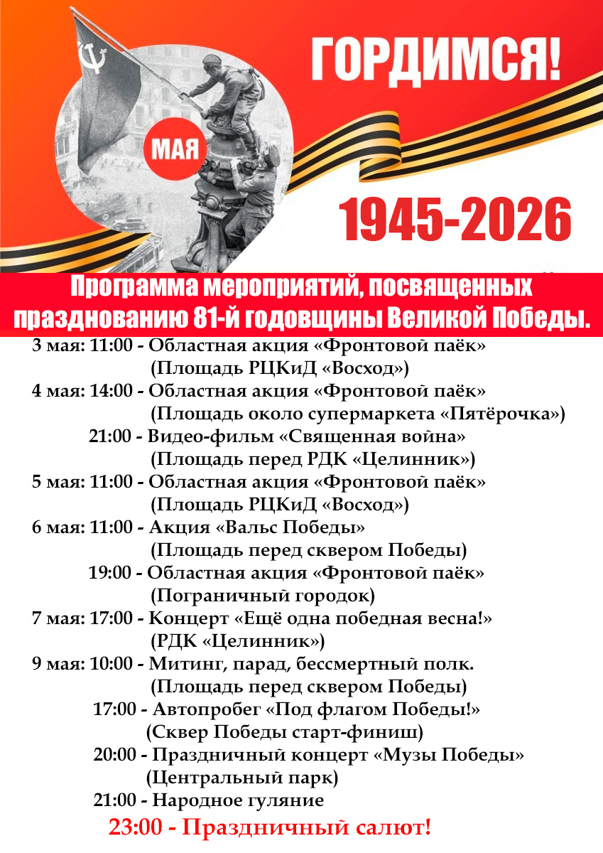 ПРОГРАММА МЕРОПРИЯТИЙ, ПОСВЯЩЕННЫХ ПРАЗДНОВАНИЮ 81-Й ГОДОВЩИНЫ ВЕЛИКОЙ ПОБЕДЫ.