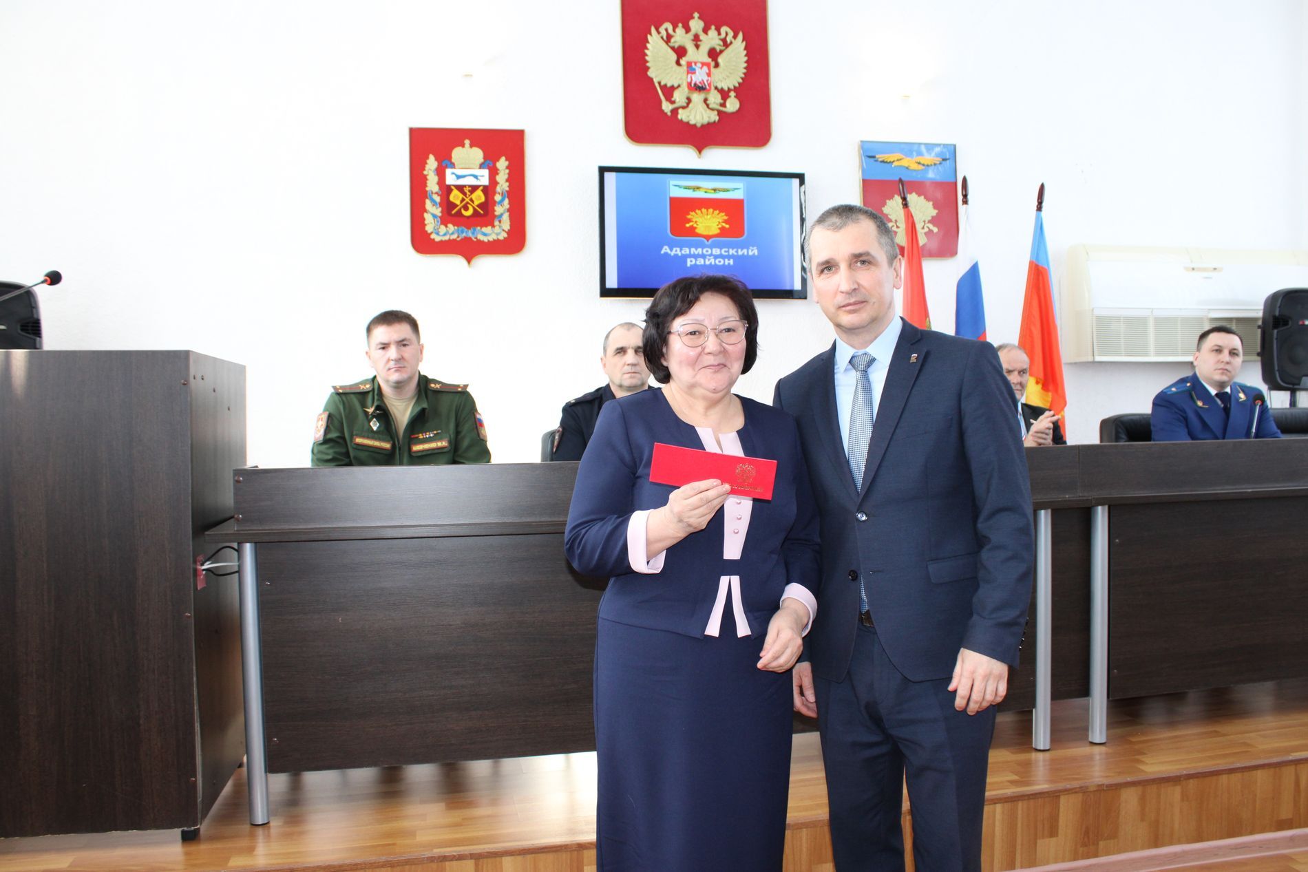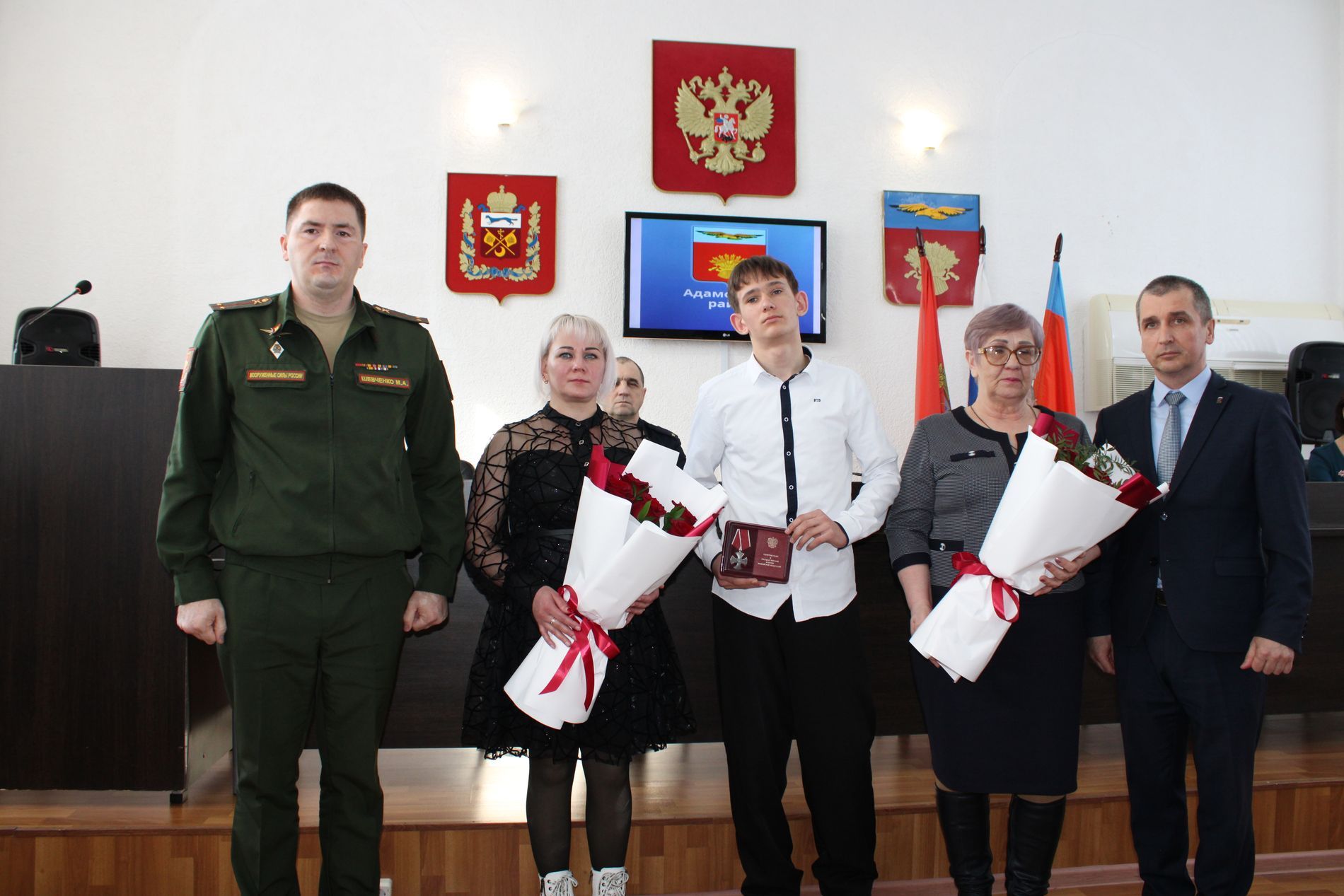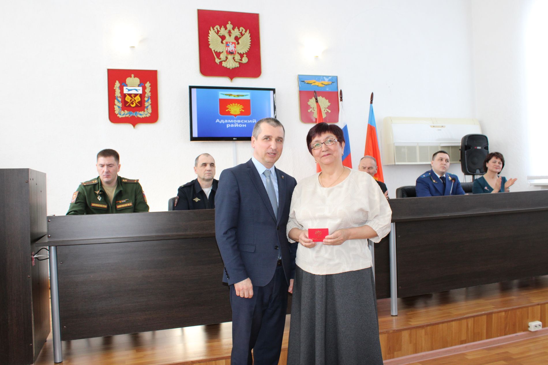 Торжественная церемония занесения имен заслуженных адамовцев на доску почета Адамовского района , вручение медалий и вручение паспортов.